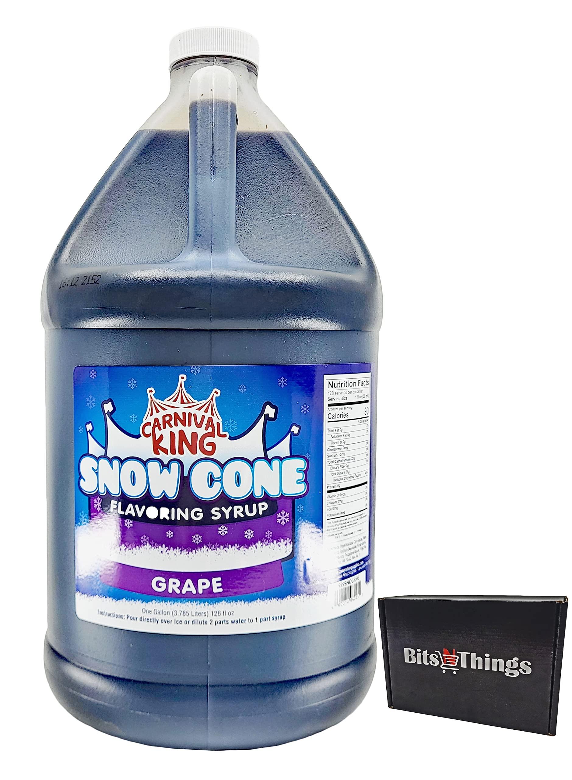The sweet grape flavor is a classic summertime favorite. Use it by itself or pour several different flavors onto your snow cone for a whimsical look, and the possibilities are endless. Besides traditional snow cones, this syrup can also be used with ice and a scoop of marshmallow topping to create a classic snowball. Carnival King offers great flavors at a great value, and this syrup enhances the appearance, color, and taste of your shaved ice desserts.