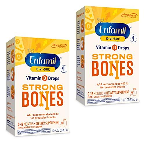 Enfamil D-Vi-Sol infant vitamin D drops have Vitamin D to help your babys body absorb calcium for strong bone and teeth development*. One serving contains 100% of the daily value of Vitamin D for breastfed infants from 0-12 months as recommended by the American Academy of Pediatrics (AAP). The AAP recommends 400 International Units (IU) of vitamin D daily beginning the first few days of life for breastfed or partially breastfed infants, or infants who receive less than one liter or one quart of vitamin-D fortified formula daily. Enfamil D-Vi-Sol is naturally flavored and does not have ingredients derived from the most common food allergies. Enfamil vitamins are the #1 infant vitamin brand and the #1 recommended infant vitamin brand by pediatricians. The standard serving for Enfamil D-Vi-Sol is 1 milliliter (mL) per day. *These statements have been evaluated by the Food and Drug Administration. This product is not intended to diagnose, treat, cure or prevent any disease.
