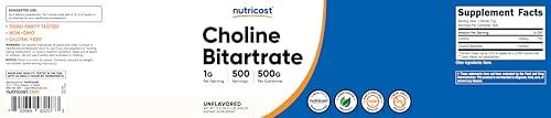 500 Grams of Choline Bitartrate Per Bottle 1 Gram Per Serving (Scoop Included) Independent, 3rd Party Testing by ISO-Accredited Laboratories Non-GMO & Gluten Free Made In a GMP Compliant, FDA Registered Facility 500 Grams of Choline Bitartrate Per Bottle 1 Gram Per Serving (Scoop Included) Independent, 3rd Party Testing by ISO-Accredited Laboratories Non-GMO & Gluten Free Made In a GMP Compliant, FDA Registered Facility